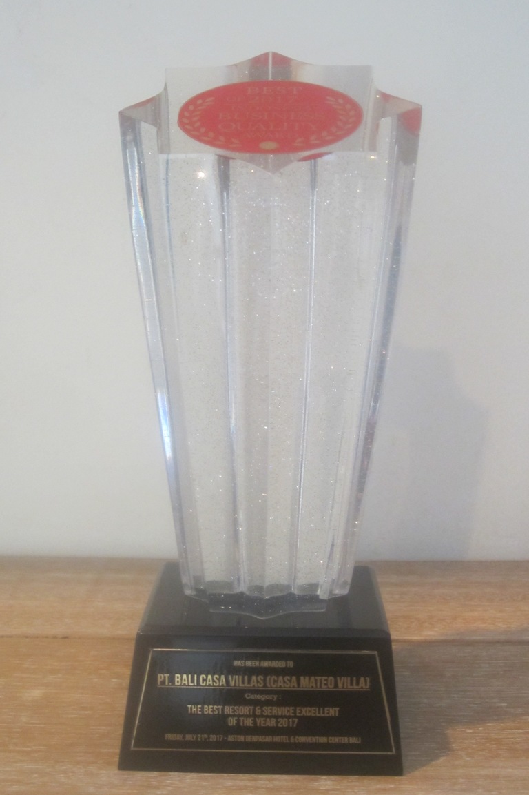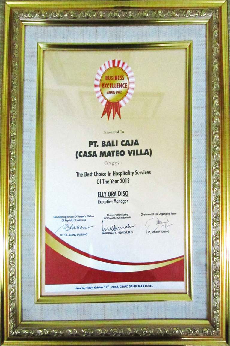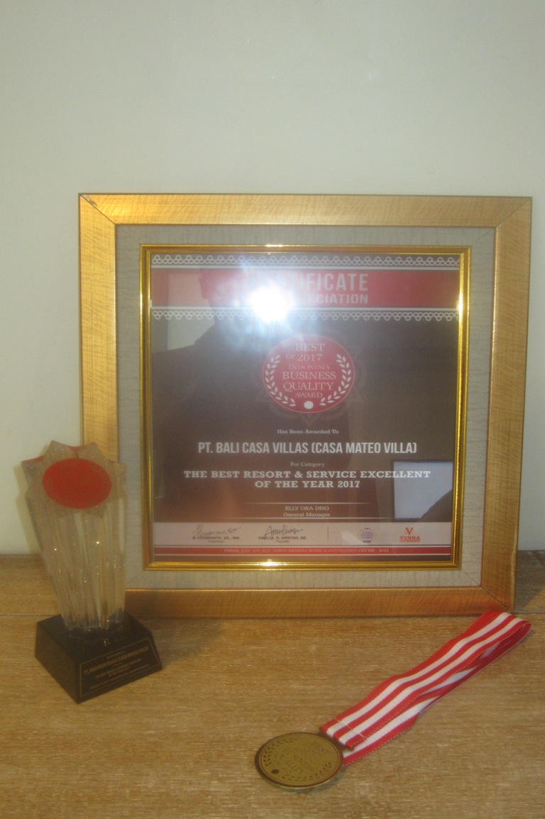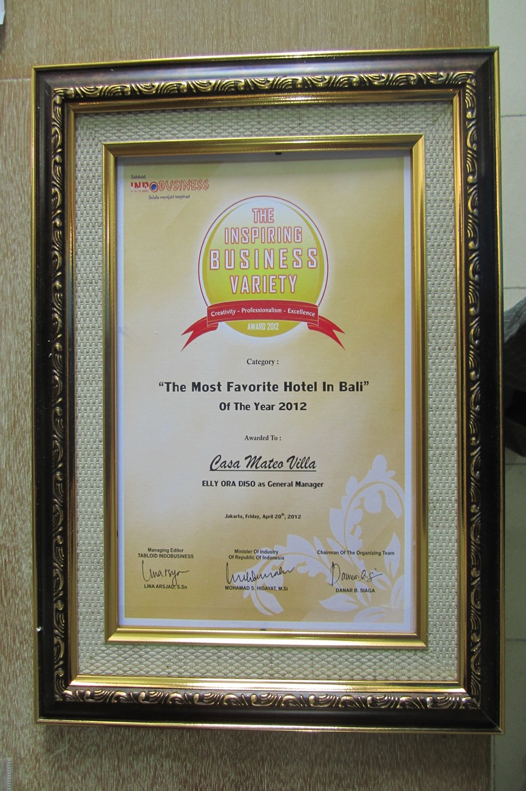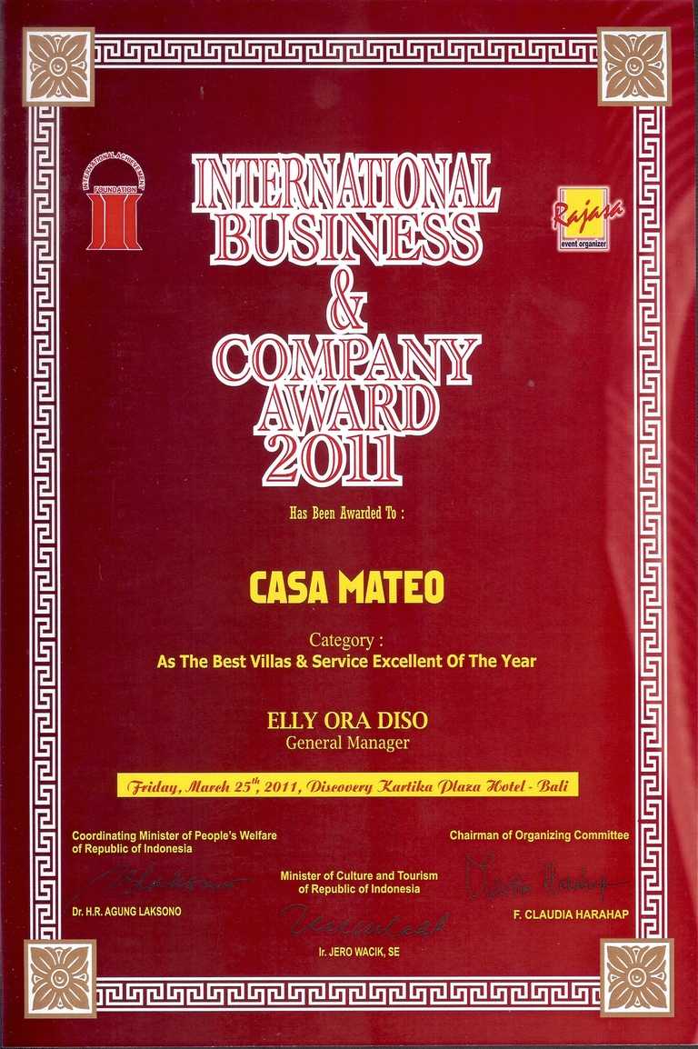 Bali, 26 March 2011: Casa Mateo Villa received the International Business & Company Award 2011 for Excellence Service of the Year.